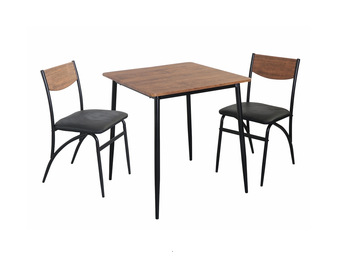 Näppärän pieni ruokaryhmä: pöytä 70x70 cm ja kaksi tuolia.